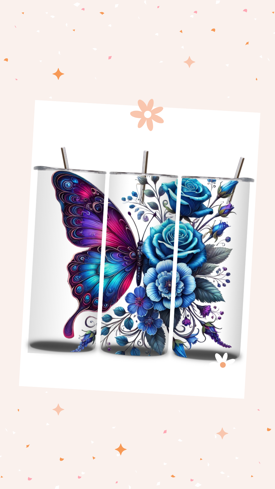Package includes: tumbler, plastic lid, metal straw, and straw cleaner.