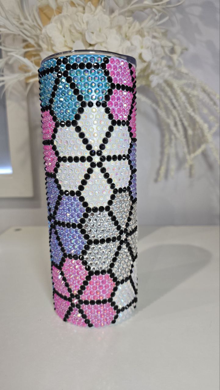 20oz Skinny Straight Bling Tumbler design, comes with lid & straw.