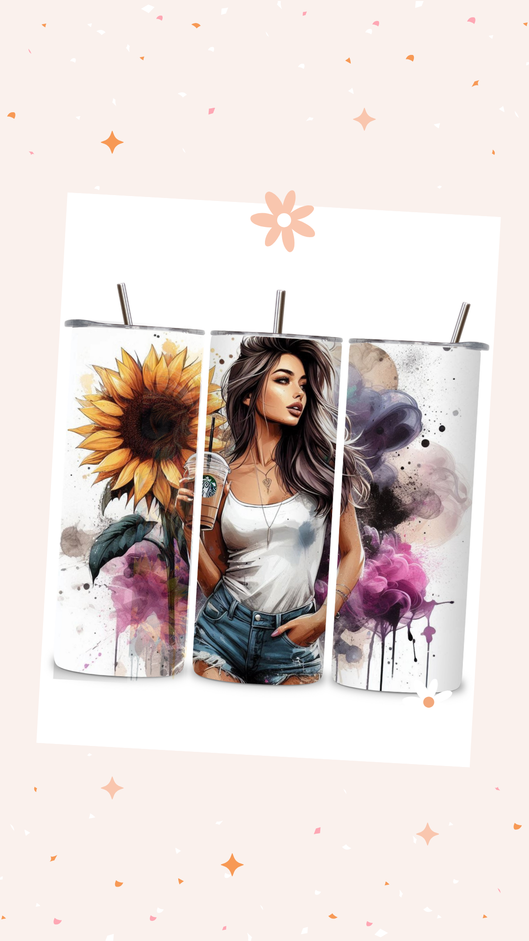 Package includes: tumbler, plastic lid, metal straw, and straw cleaner.